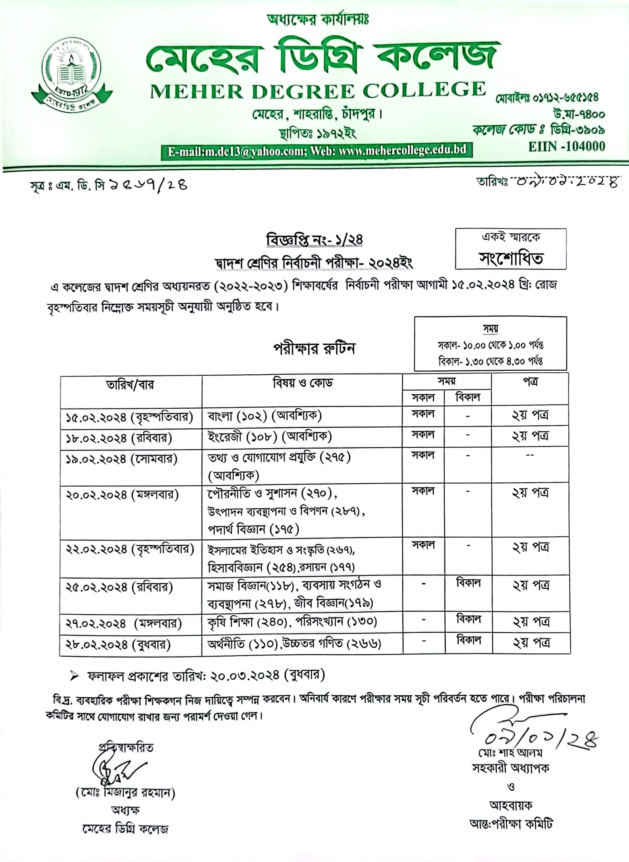 EIIN Code : 104000, ESTD : 1972